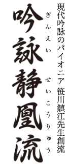 幼くして、この伝統芸術を学んだ私は、成長して人生の何たるかを知るに従い、ますます斯道の深遠な魅力にこきつけられ、研鑽をつんだ。高雅にして典雅な斯道の価値をさらに高めるため、作調に純粋邦楽の理論を応用するなど、新しい工夫も加えた。いわゆる笹川吟法である。私はこの吟法をもって、斯道の芸術的向上と普及振興を思いたち、このほど「吟詠静凰流」を創始する意を固めた。
